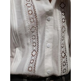 Women's Elegant Semi-Sheer Lace Blouse - Lightweight Breathable Long Sleeve Button-Up Shirt with Stand-Up Collar, Solid Color Machine Washable Plus Size Top for Spring Summer Casual & Formal Wear, Lace Shirt, Delicate Fabric Design