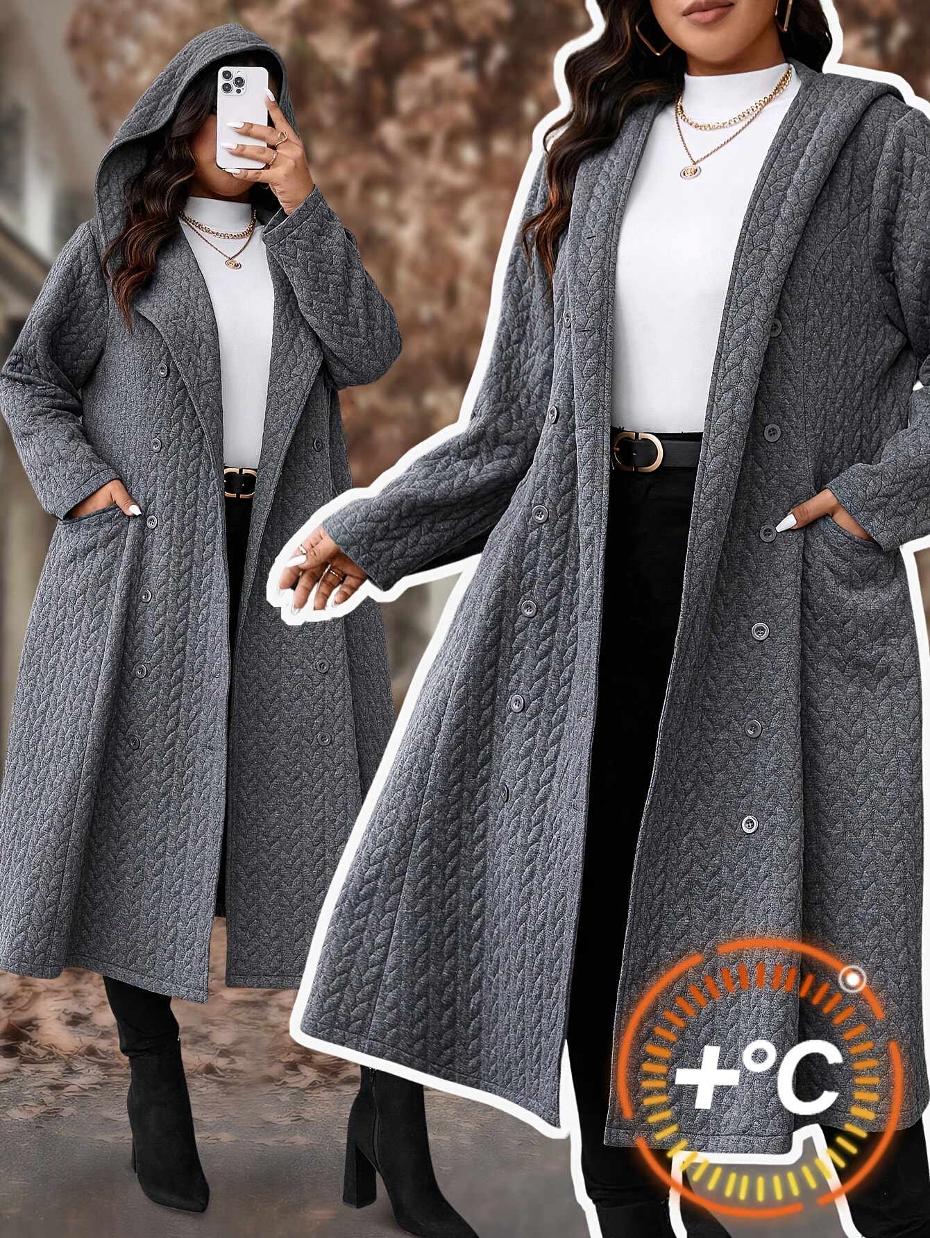 Plus Size, Autumn and Winter Loose Casual Long Thick Sweatshirt Hooded Jacket, Winter Outerwear, Cold Weather Clothing, Stylish Outerwear, Minimalist Design, Pullover Coat, Oversized Hoodie, Men’S Casual Wear, Women’S Fashion