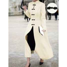 Plus Size, Women's Plus Size Elegant Vintage Button-Front long Coat with Stand Collar - Solid Color Winter Jacket, Machine Washable Fall/Winter Outerwear for Weddings, Parties, Special Events