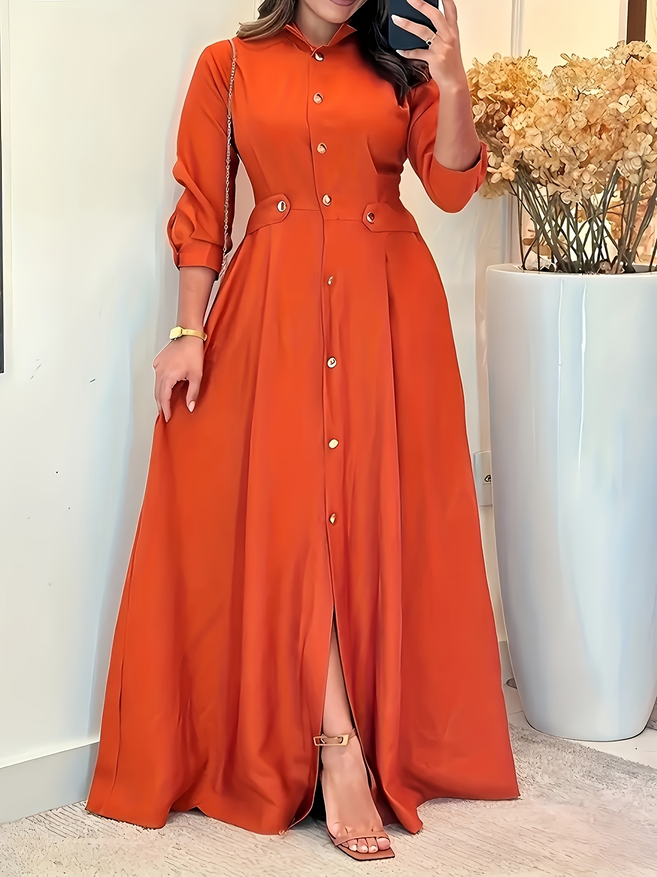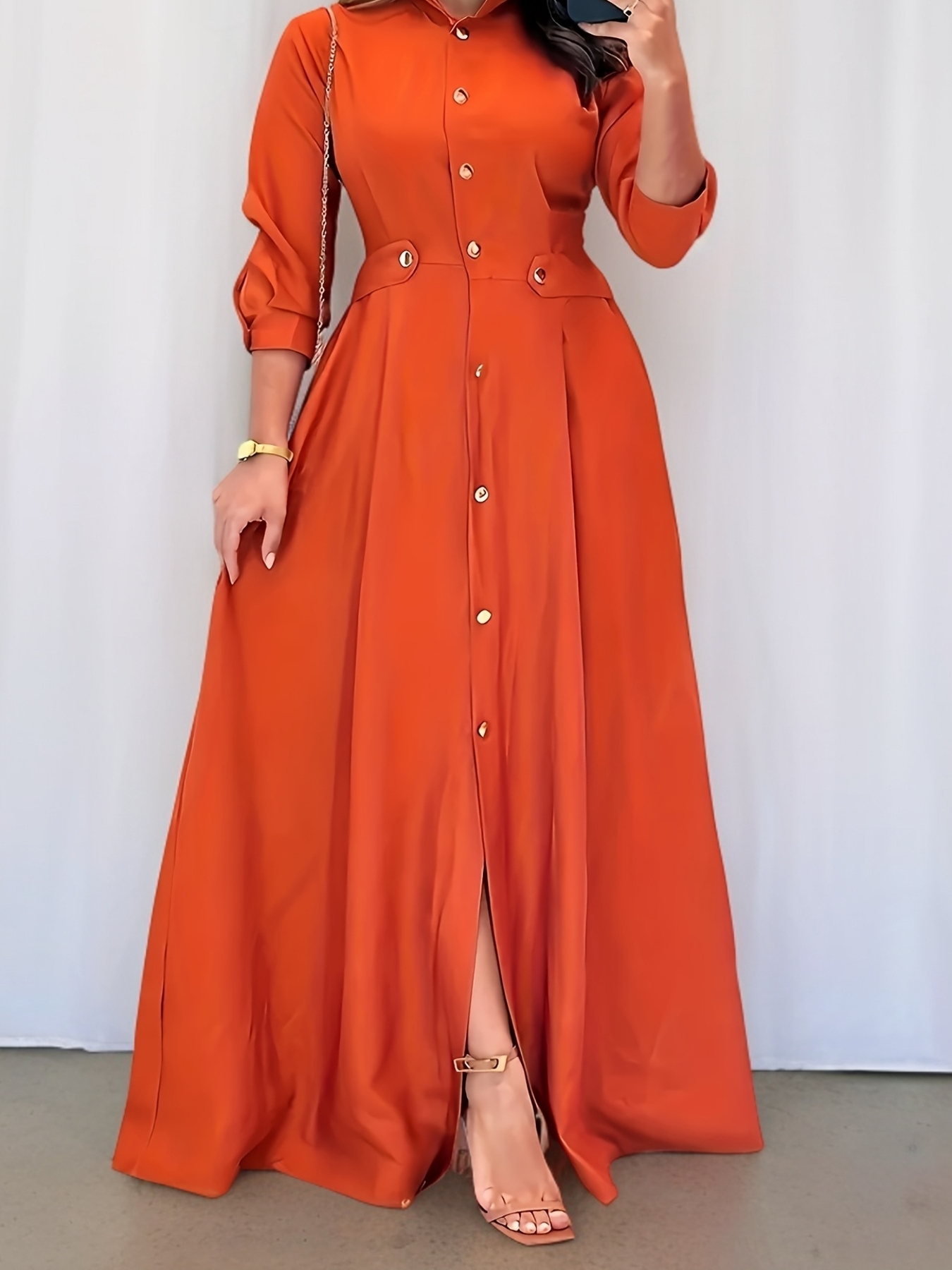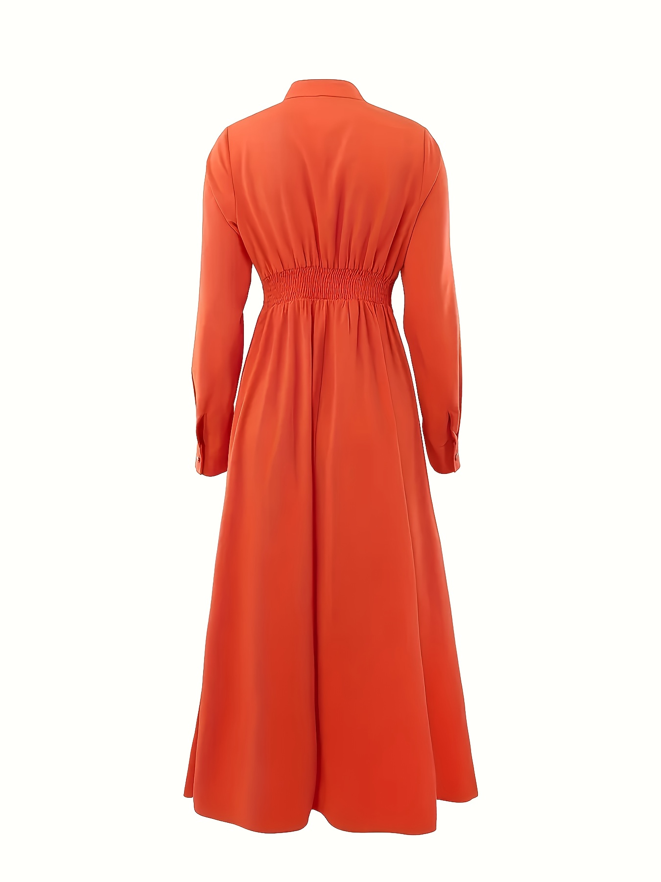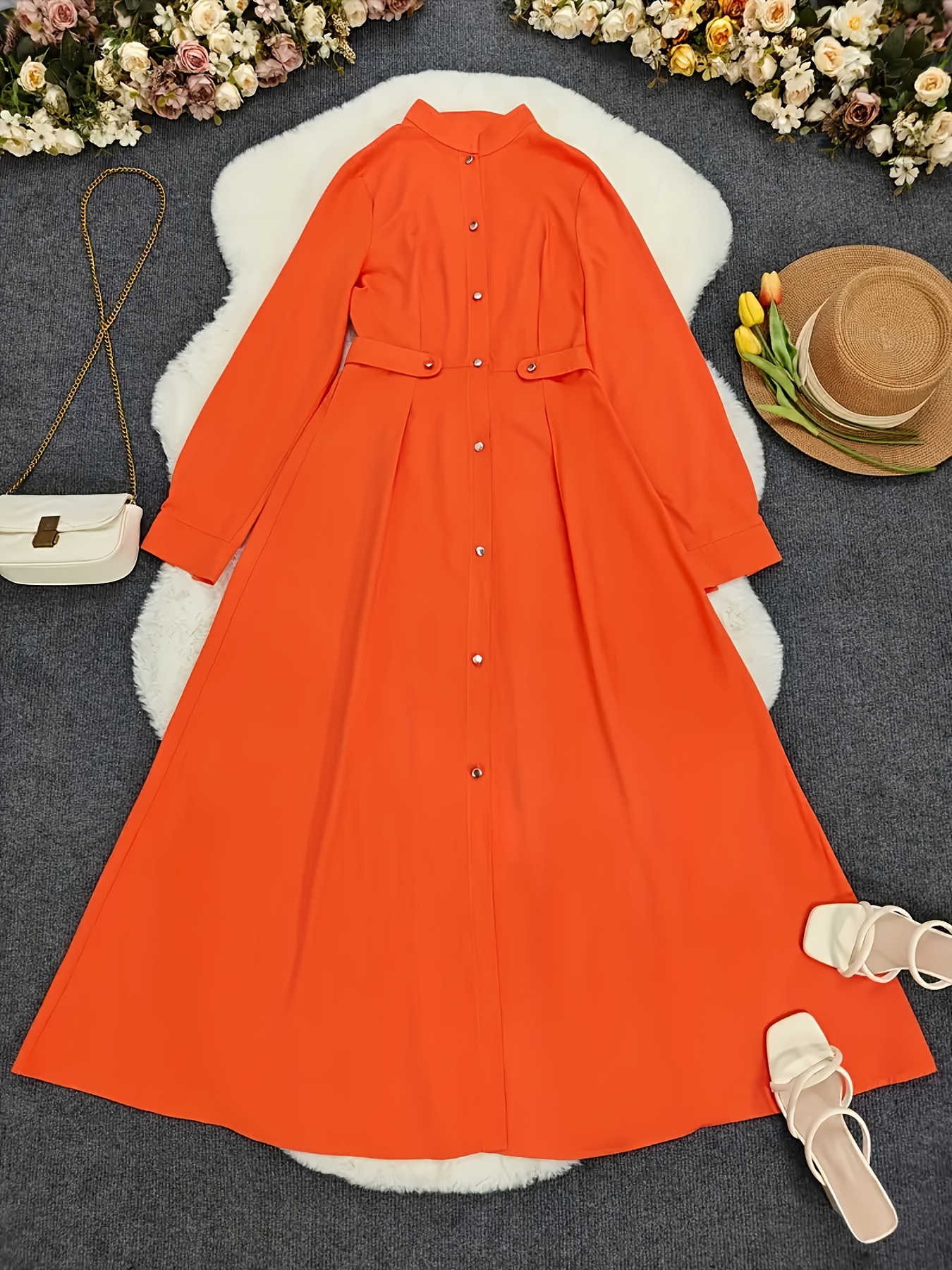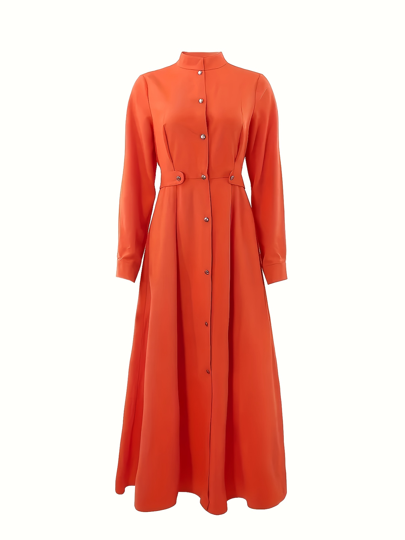 Plus Size - Elegant Plus Size Women'S Dress - Vibrant Orange, Long Sleeve, Button-Up, Flowy A-Line Silhouette, Non-Stretch Fabric, Perfect for Casual or Formal Occasions, Casual Dressing | Vibrant Orange Dress | Nonstretch Fabric, Orange Dresses For Women, Orange Maxi Dress, Orange Dress Long, Dresses For Women Plus Size, Plus Size Women Dresses, Women Dresses Large Sizes, Dresses For Plus Women, Ladies Dresses, Plus Size Women Elegant Dresses, Dresses For