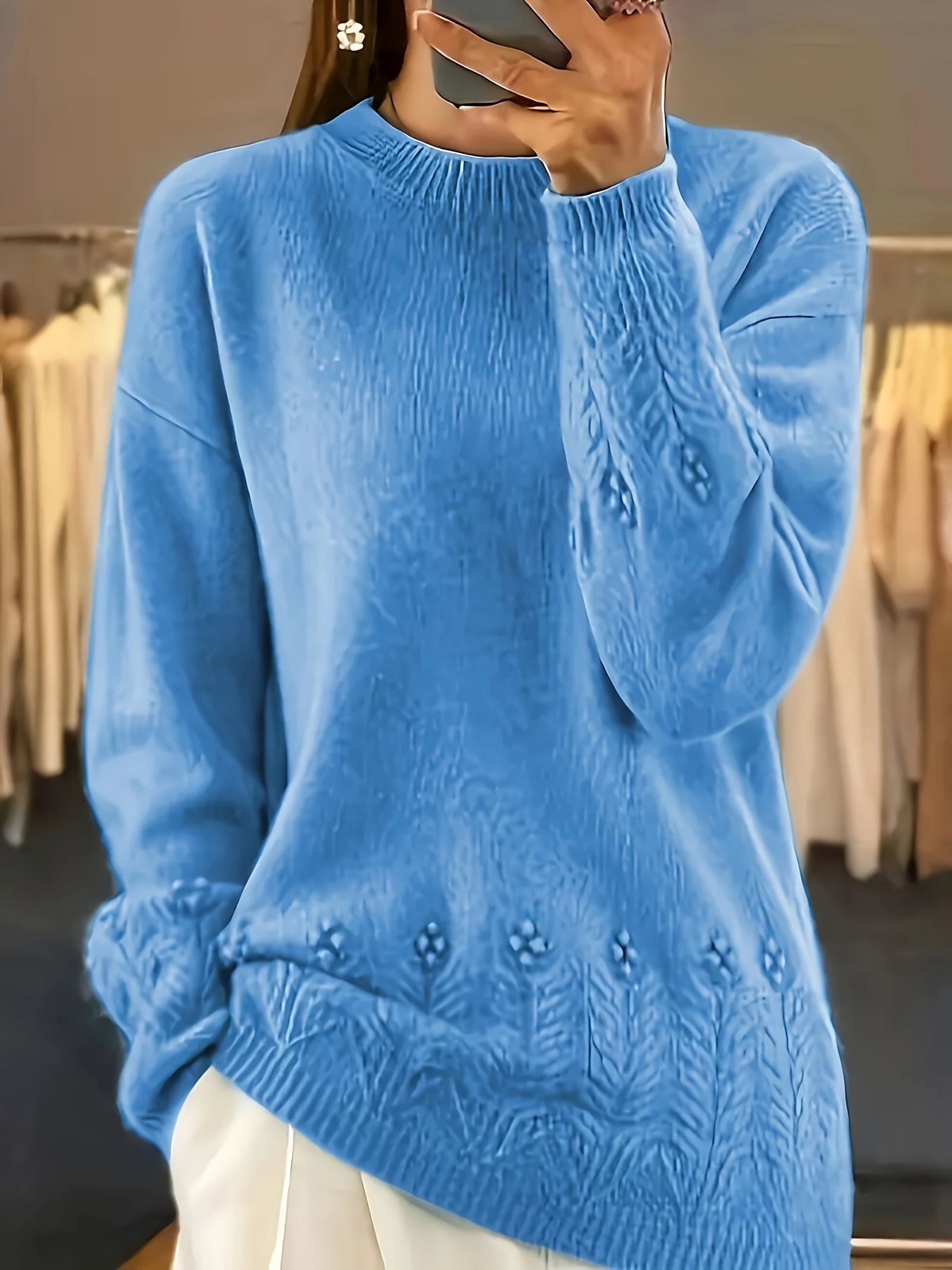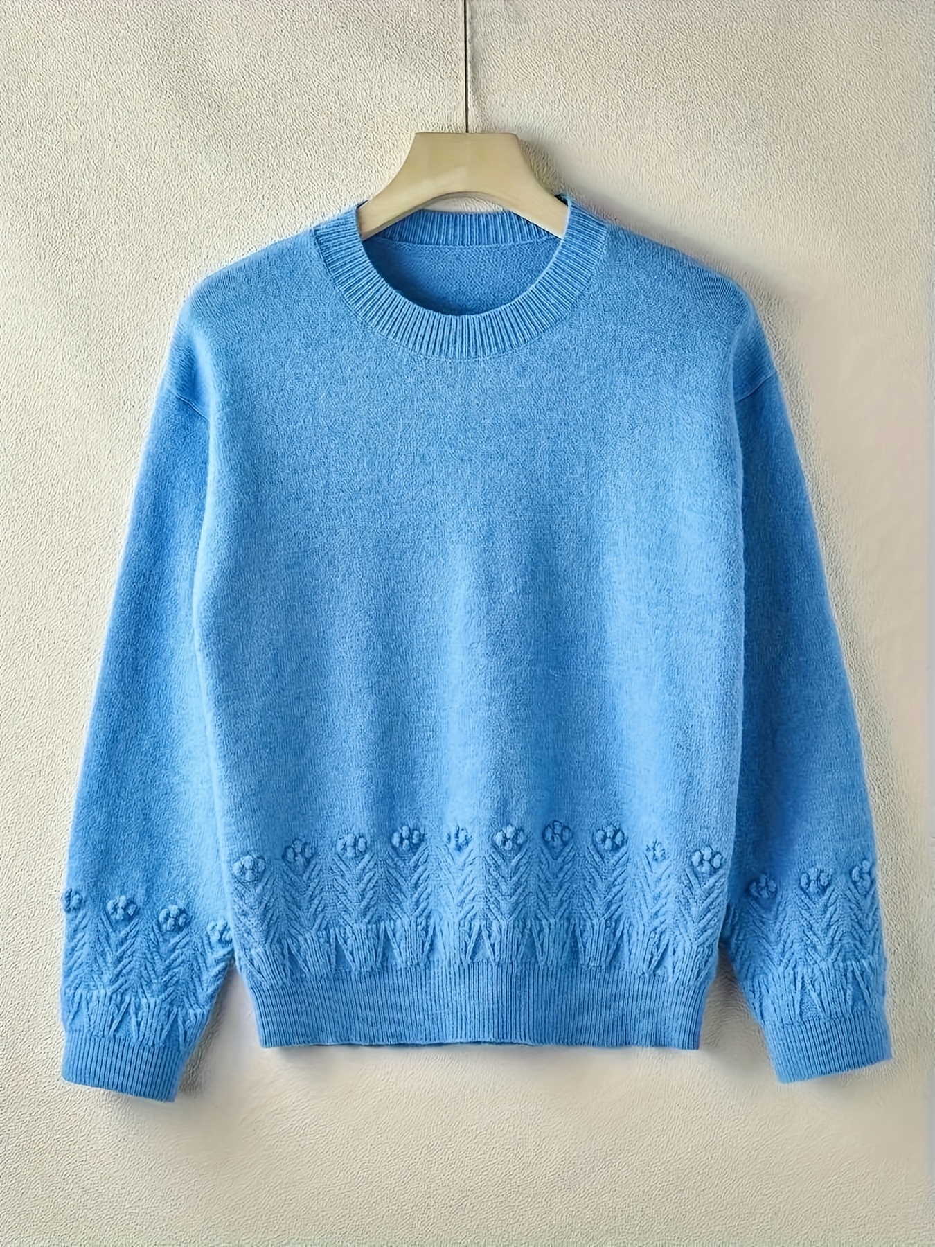 1pc Women'S Casual Crew Neck Sweater, 100% Acrylic Knit Fabric, Solid Color Pullover with Slight Stretch, All-Season Long Sleeve Sweatshirt