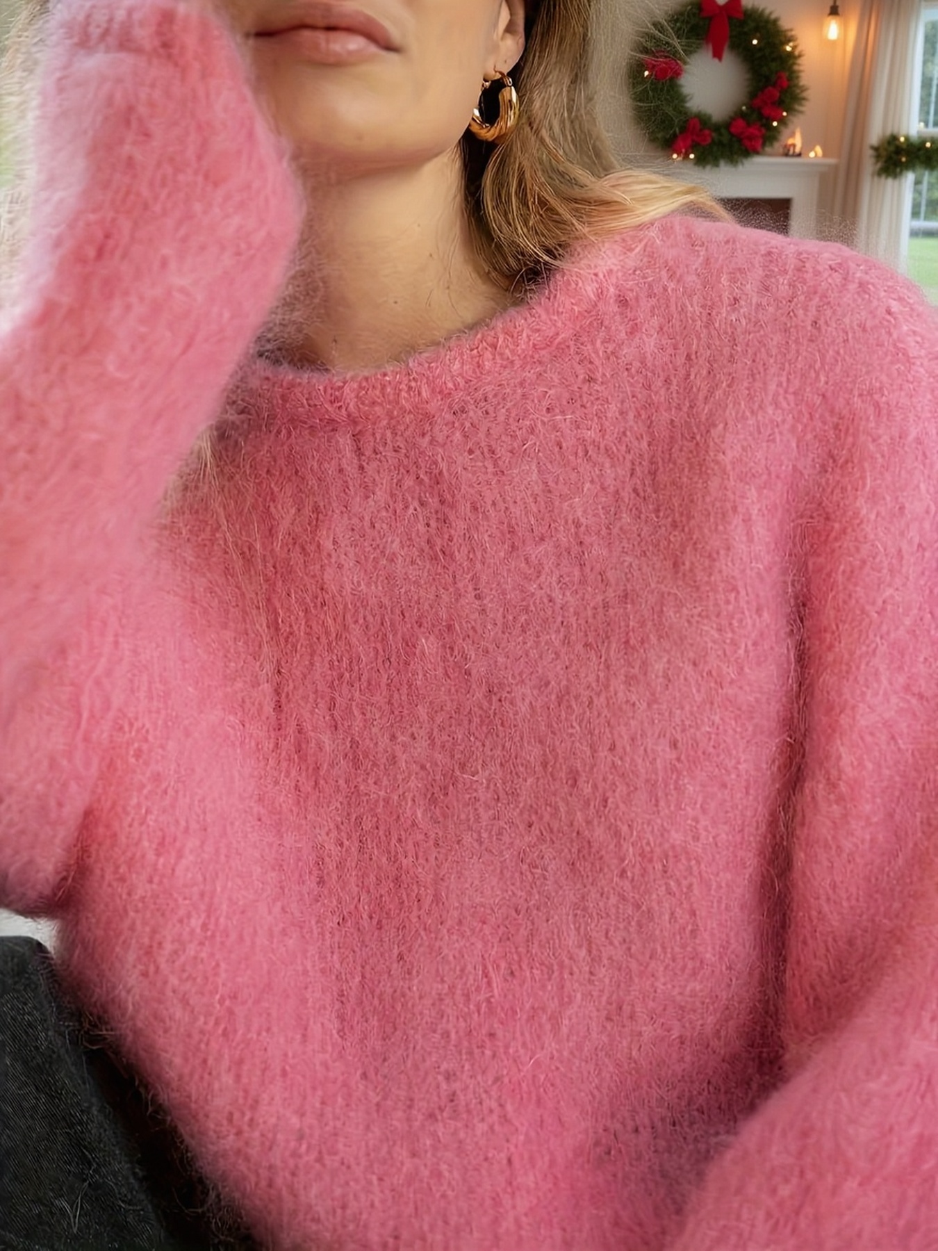 Plus Size - Women'S Elegant Sweater - Soft Pink Pullover Sweater for Fall/Winter, Cozy Everyday & Formal Outfits - Easy-Care Women'S Sweater for Women, Sweater, Casual Wear, Retro Style, Medium Stretch Fabric