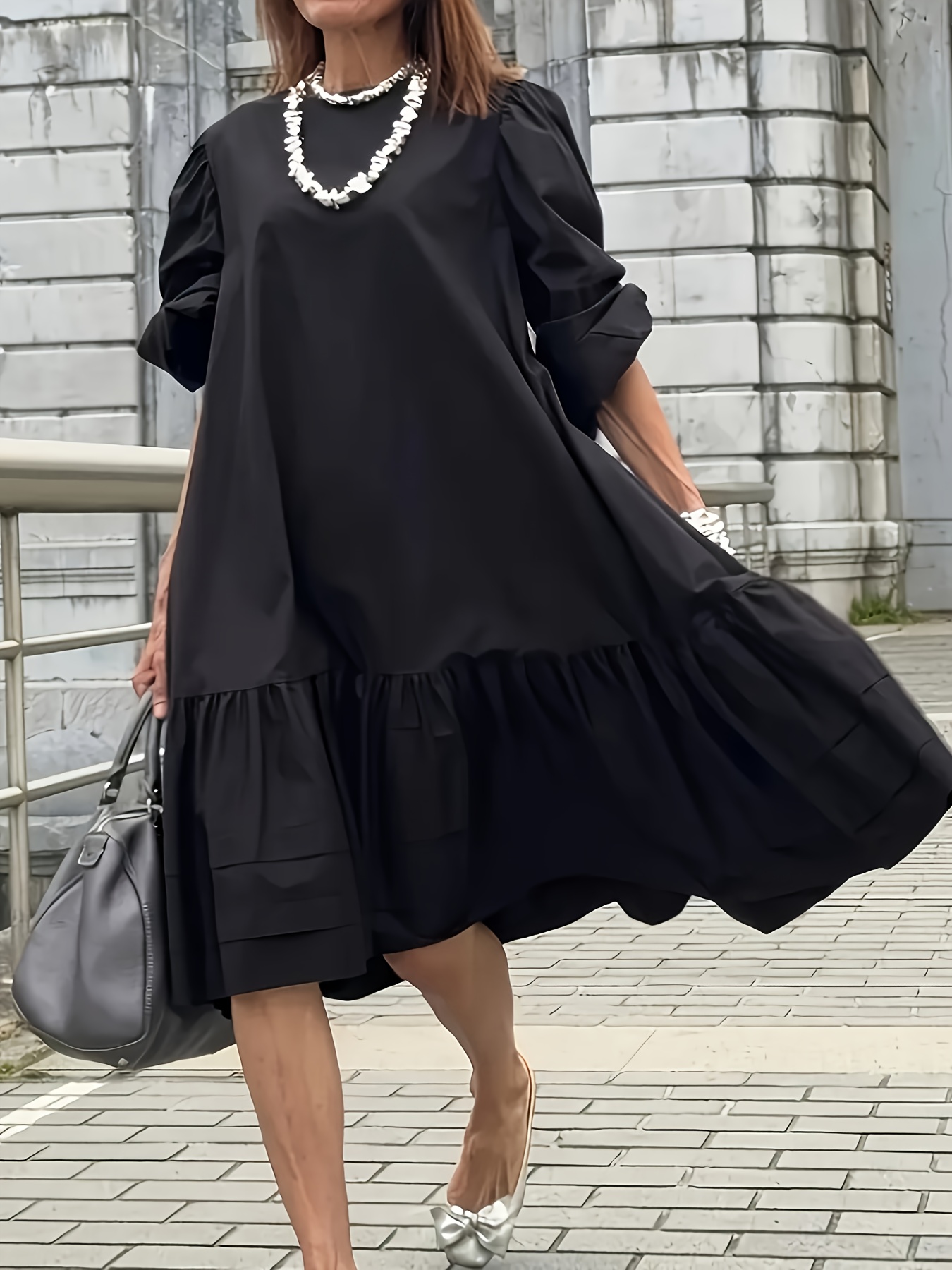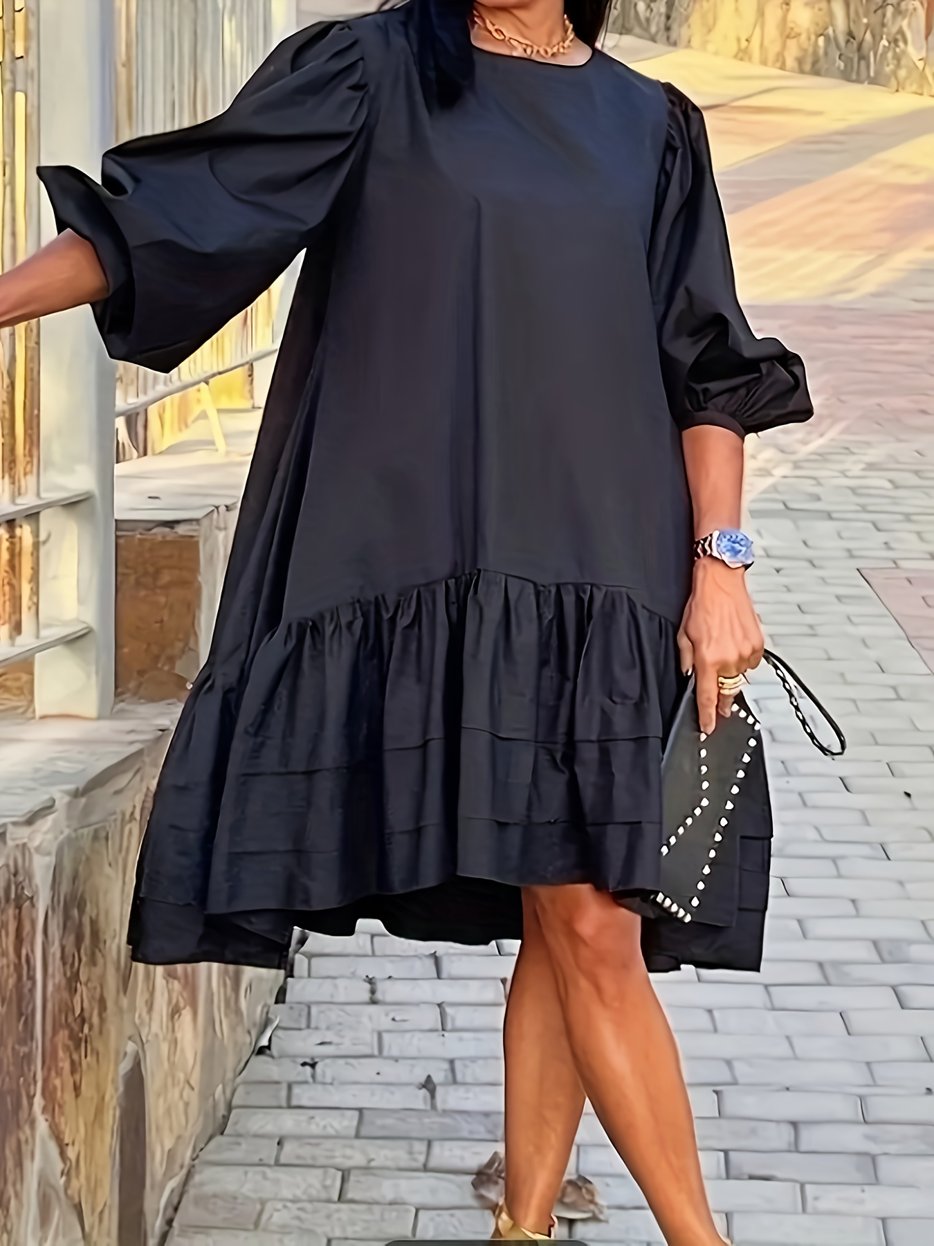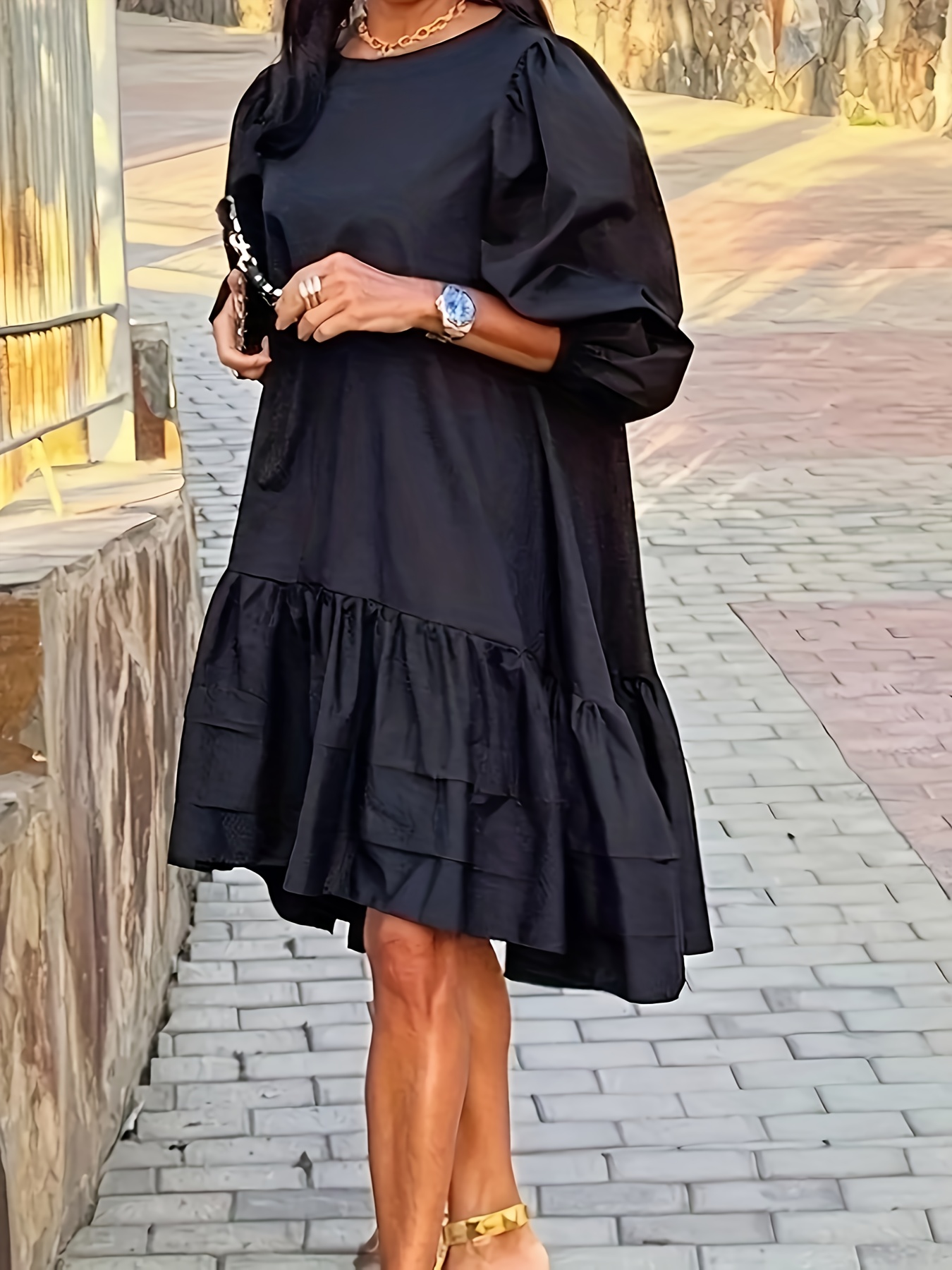 [Elegant Plus Size Dress] Elegant Plus Size Women's French-Inspired Summer Dress | Sleeveless Ruffled Hem Bodycon with Golden Chain Strap, Solid Color Round Neck for Spring/Summer Casual Wear, Cute Dresses