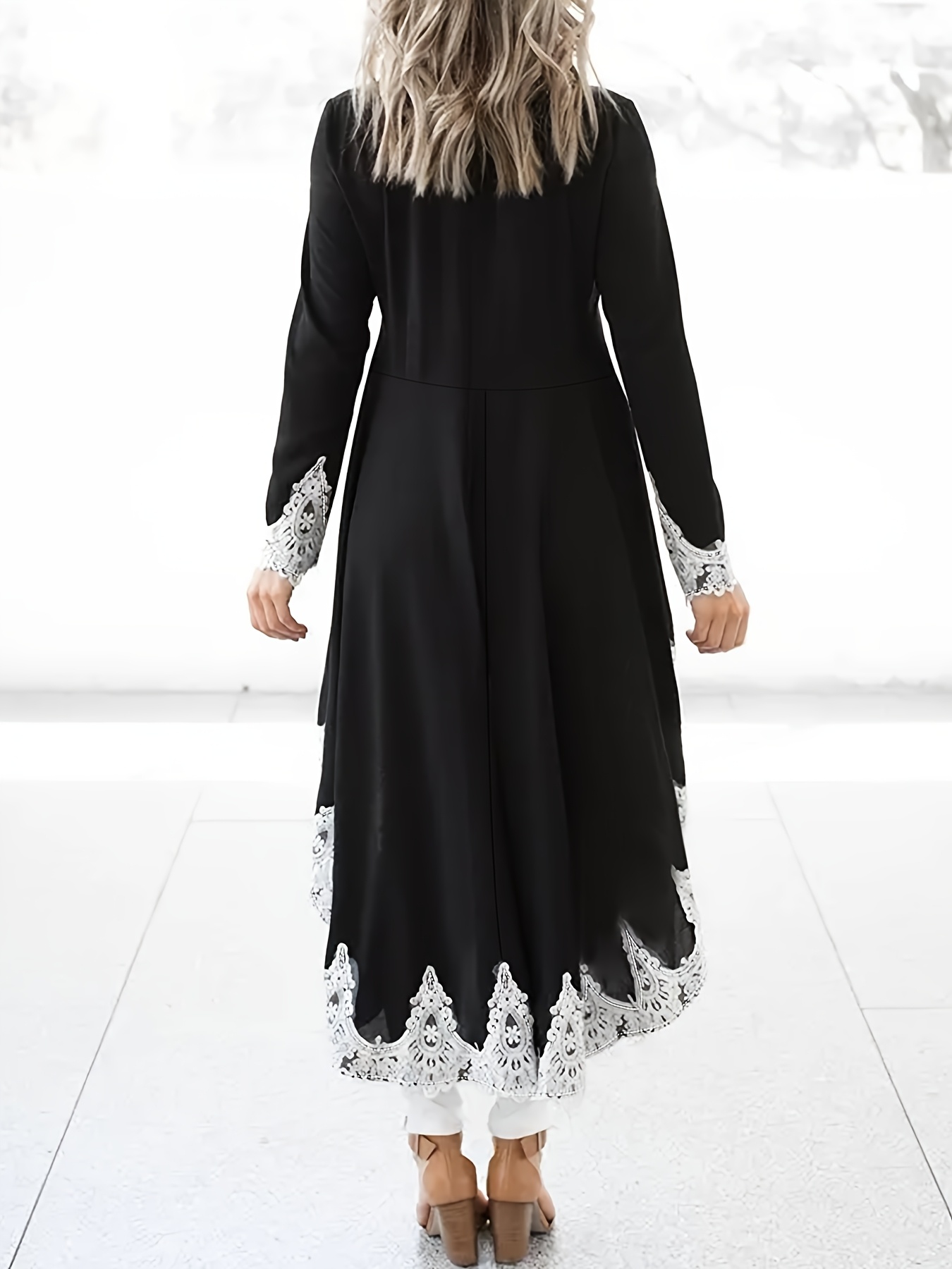 [Elegant Plus Size Dress] Elegant Plus Size Women's Long Sleeve Maxi Dress | Black & Lace Contrast, Flowy Formal/Everyday Dress with Round Neck, Machine Washable Non-See-Through Fabric for Parties, Office, Casual Outfits, Everyday Elegance, Sophisticated Style
