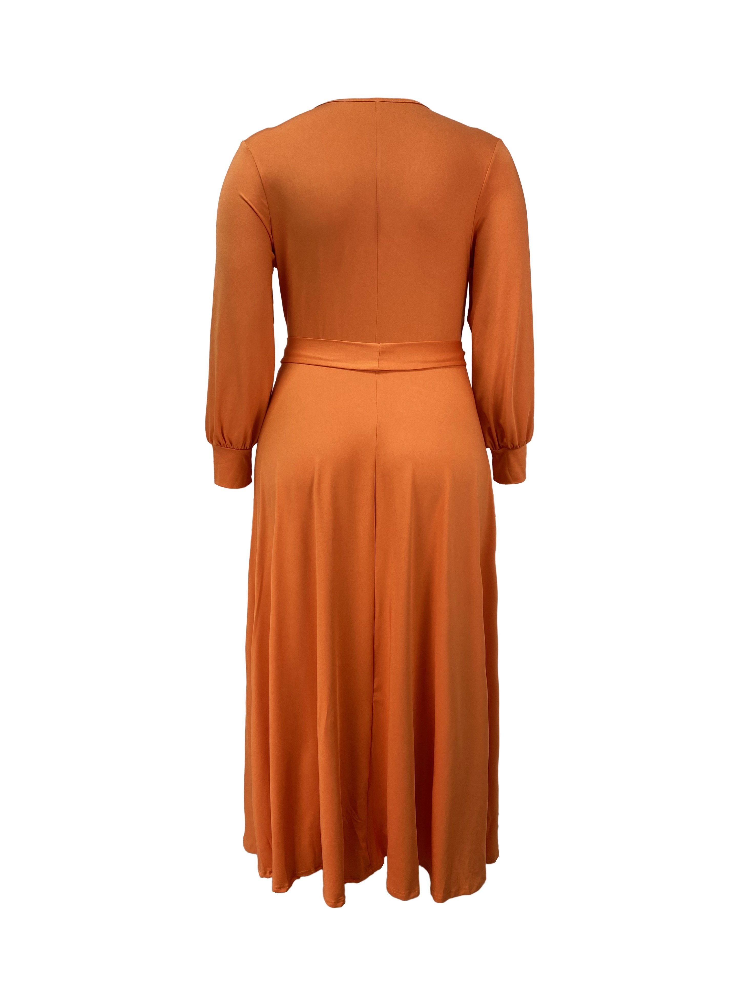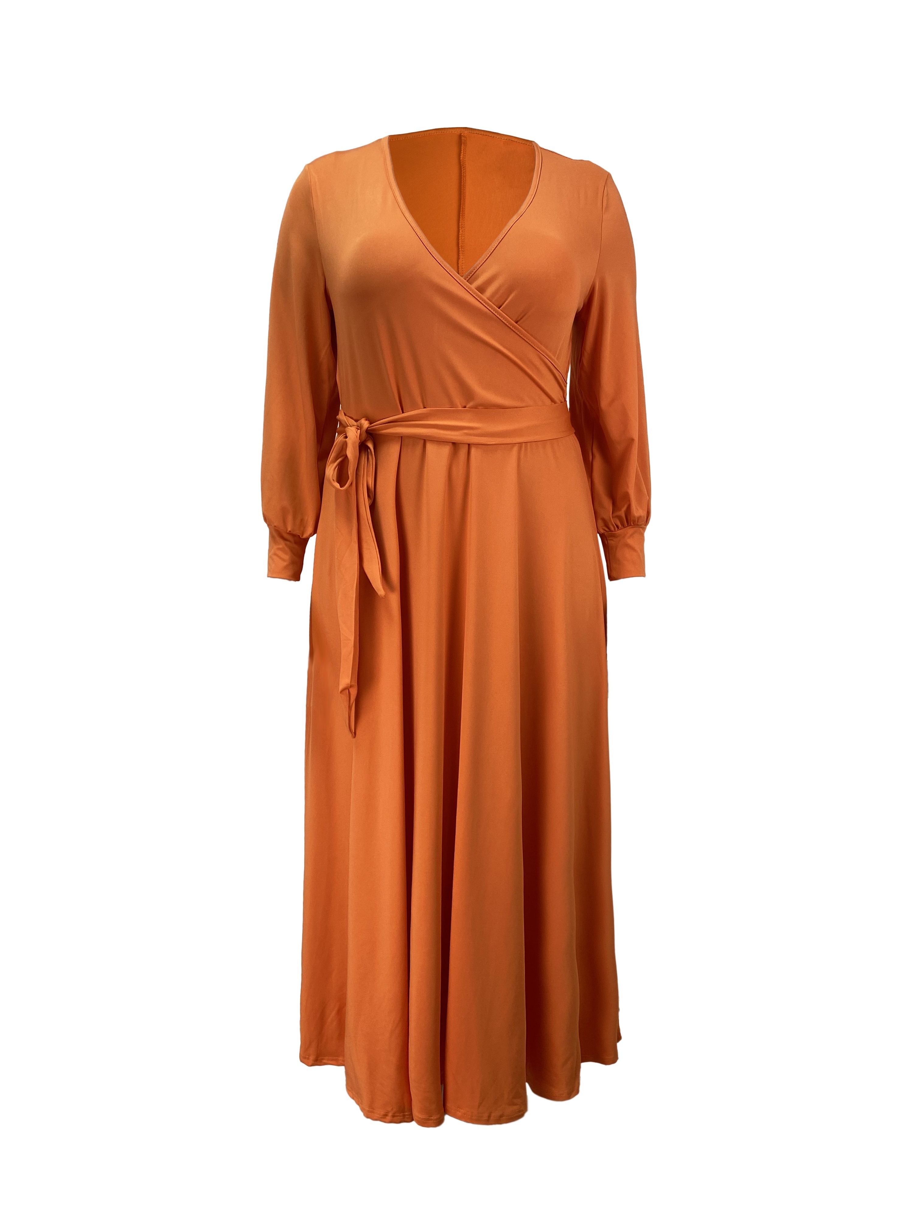 Plus Size Elegant Surplice Neck Maxi Dress - Soft Solid Color, Long Sleeve, Tie Waist, Flattering Fit for Spring & Fall - Women's Comfortable Plus Size Clothing for Everyday Wear