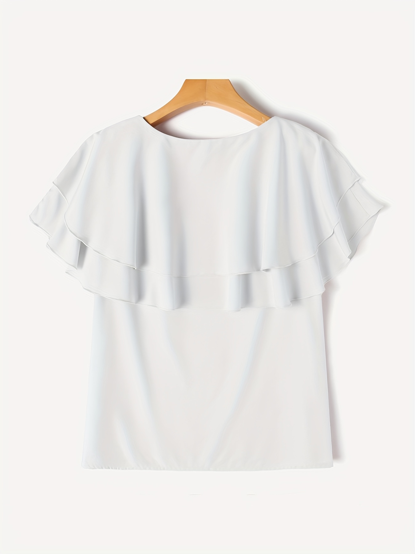 [Short Sleeve Ruffle Blouse] Elegant Plus Size Women's Blouse - Casual Short Sleeve with Ruffle Detail, Solid Color, Non-Stretch Polyester - Perfect for Spring/Summer