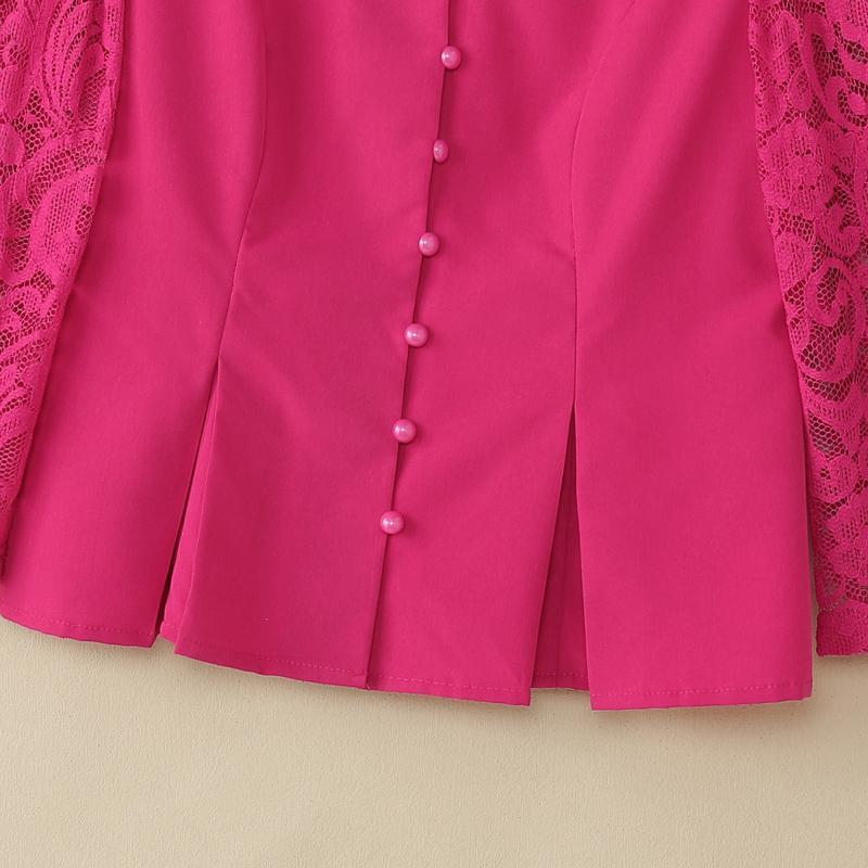 Plus Size - ZANZEA Women'S Elegant Lace Patchwork V-Neck Blouse - Long Sleeve, Front Button Closure, Waist Split Hem, Solid Color for Office, Evening, Women Elegant Floral Lace Trim Blouse, Women Elegant Floral Lace Trim Top