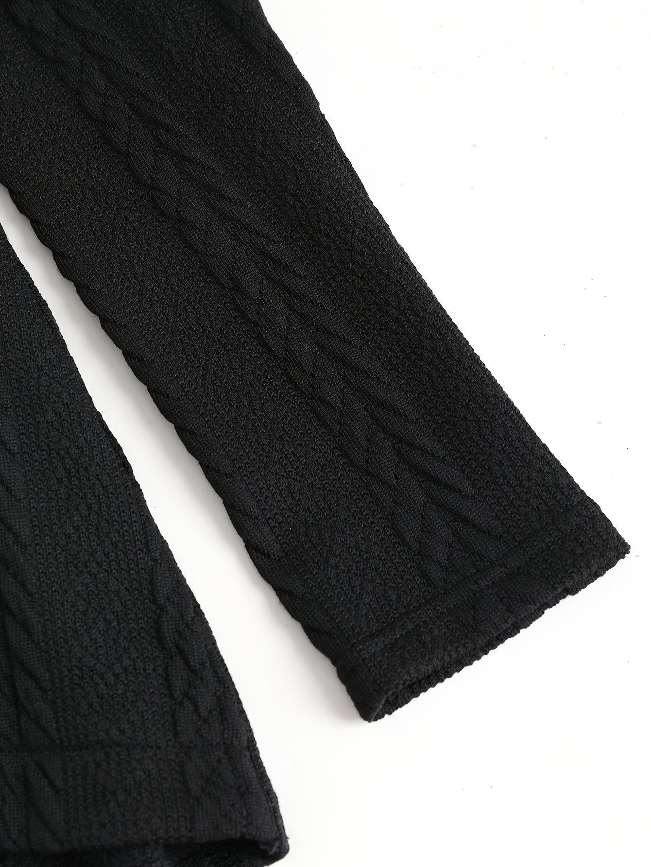 Plus Size, Plus Size Women's High Neck Asymmetrical Button-Front Long Sleeve Top - Stretch Fabric, Machine Washable, Solid Black Casual Chic Fall Winter Tops, Seasonal Wardrobe Staple, Stylish Knitwear, Quality Stitching, Button Front Blouse, Stylish Wardrobe Essential