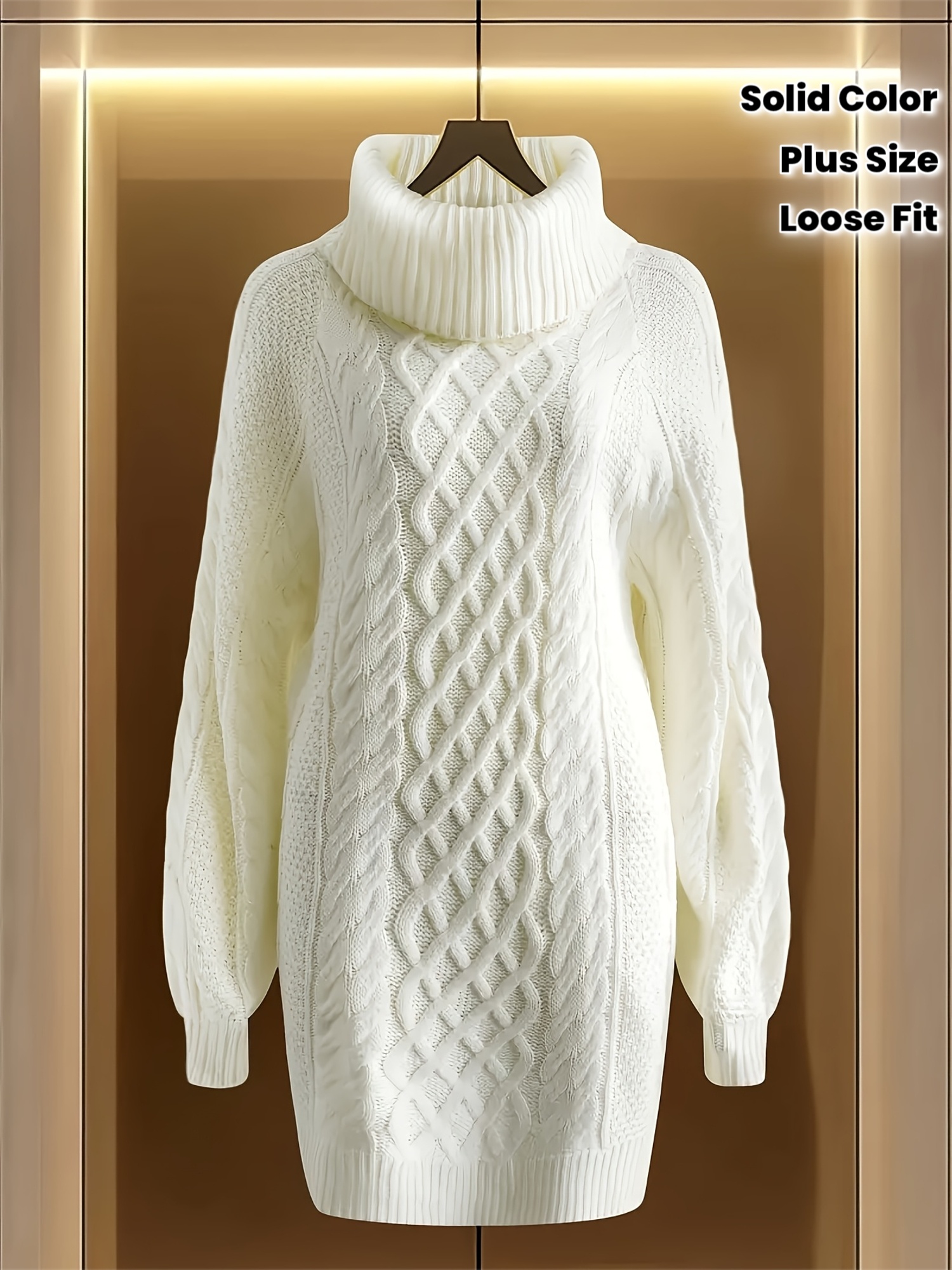 Women's Elegant High Neck Sweater Dress, Stretchy Long Sleeve Winter Dress with Round Neck, Loose Fit Solid Color Sweater Dress for Fall/Winter, Casual to Formal Wear, Plus Size